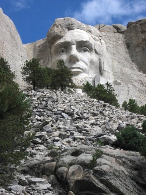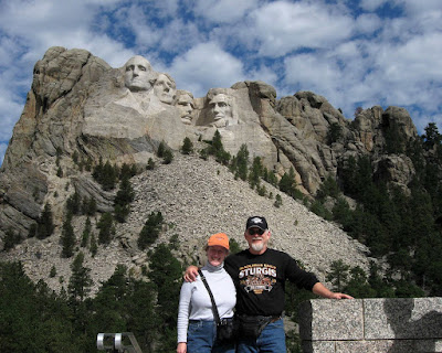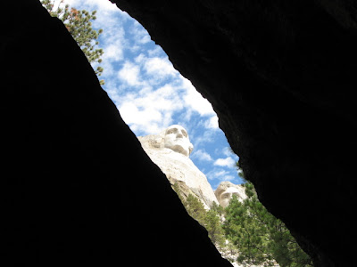 Mt. Rushmore is just a brief ride from Rapid City, SD, where we are staying during Sturgis. It's a tourist favorite and despite the picture postcard connotations, a startling sight to see. The monument was a WPA project, carved from 1928-1934. Several crusty western bikers referred to it as "big government art." I did not ask what their families were doing during the depression.