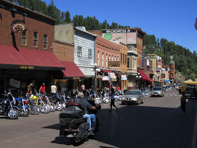 The town of Deadwood South Dakota emerged practically overnight following the discovery of gold there in the 1870s. Tradesmen followed the gold miners giving rise to a boom town famed for gambling, girls and gunfighting. Devotees of the Wild West esteem Deadwood as the town where Wild Bill Hickok was killed, though local lore insists he was assassinated. We passed a couple of colorful hours touring the main street, restored as a perfect tourist attraction, replete with saloons, slot machines, and souvenirs. As Americana it's notable that the politics of purity has somehow overlooked Deadwood, where the elementary school is situated just down the street from the notorious brothels and gambling dens.