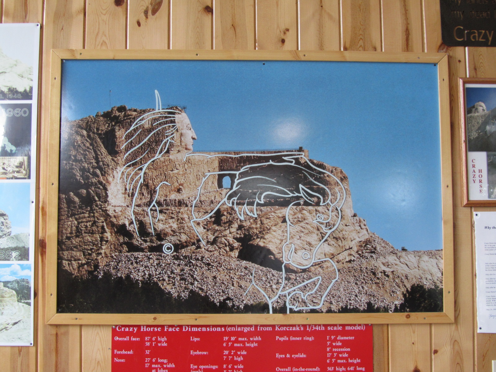 The memorial to Crazy Horse, the legendary Lakota Chief who never surrendered, inspires a poignant awe. Korczak Ziolkowski, a Polish sculptor who assisted Glutzon Borglum on Mt. Rushmore, was invited by Indian chieftains to create a monument to heroes of the "red men." Monumental it is, dwarfing Mt. Rushmore, and more than 50 years since it's beginning, the sculpture remains less than half finished. Korczak was inspired by the words of Crazy Horse, who when asked where his lands were now replied, "My lands are where my dead lie buried." Very moving. Very inspiring. Very beautiful in both concept and execution.