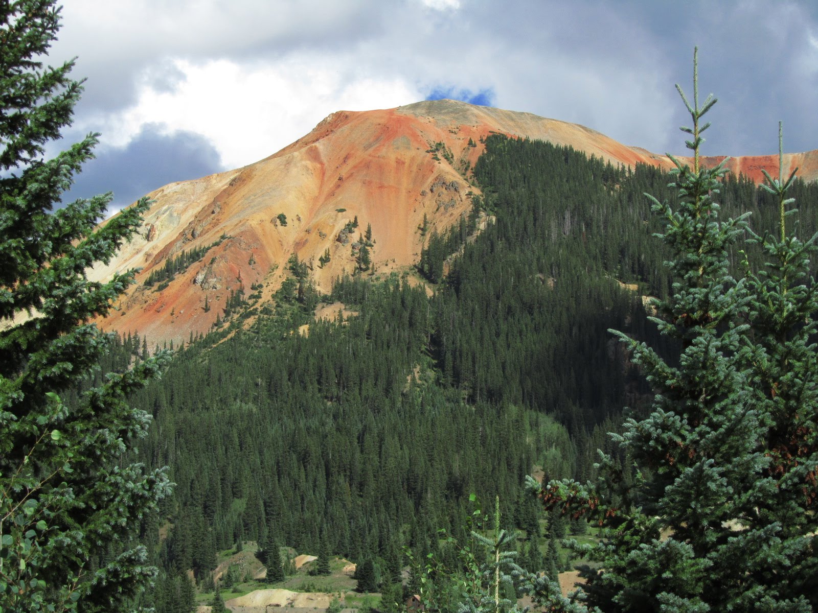 These red mountains were full of silver once. Now a scenic turnout offers a view of the Yankee Girl mine site. These folks said hello and struck up a lively conversation about New York, Colorado, Goldwing motorcycles, riding horses and the vital beauty of these mountains.