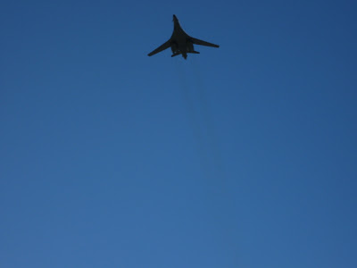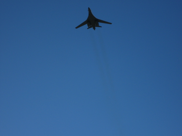 | A B-1 Bomber flyover. The ground shook and the Harleys went mute. |